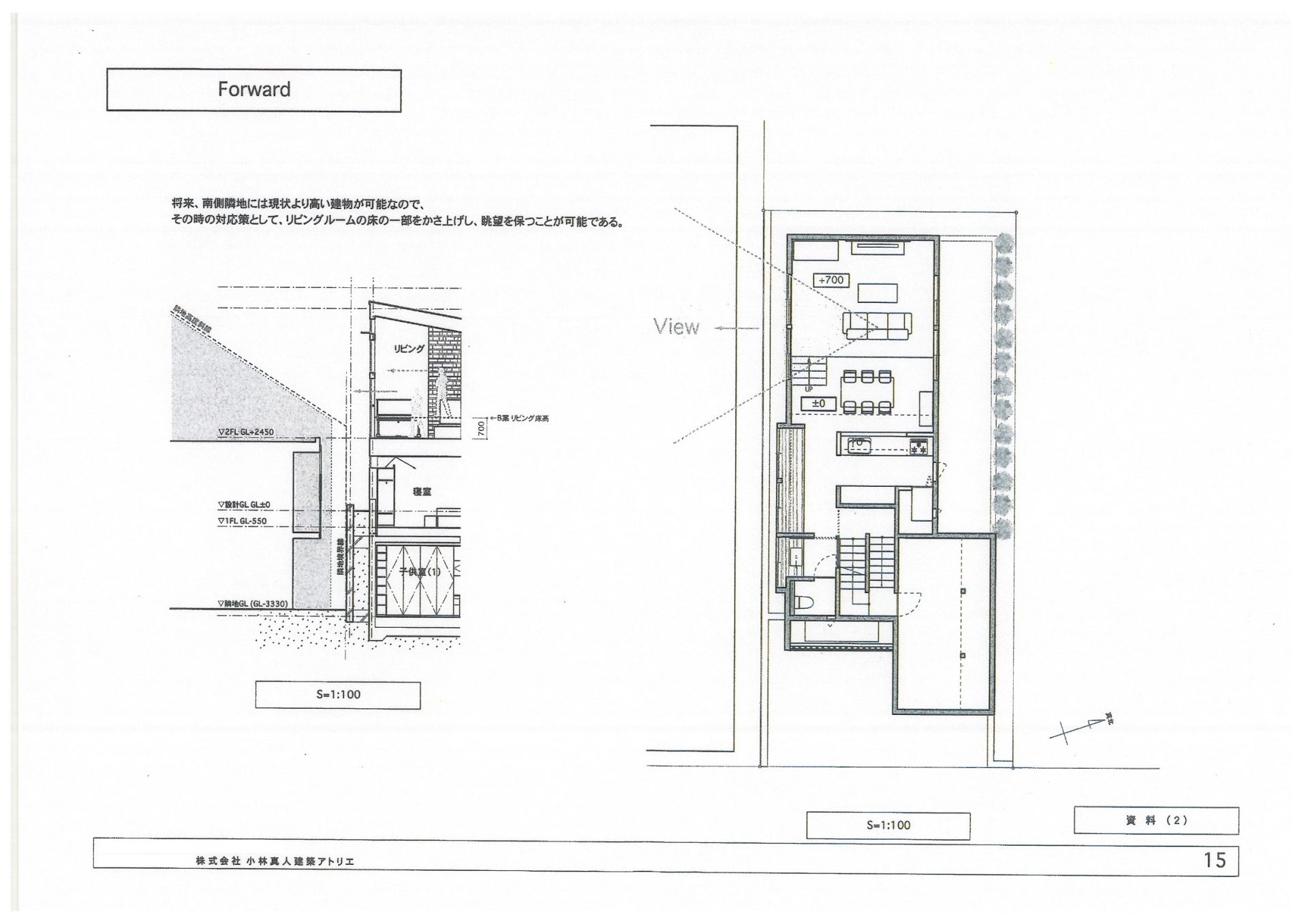 また、リビングの床の一部を70㎝かさ上げすることで、将来隣地に高い建物が建つ場合にも眺望を保つことができる提案がなされています。