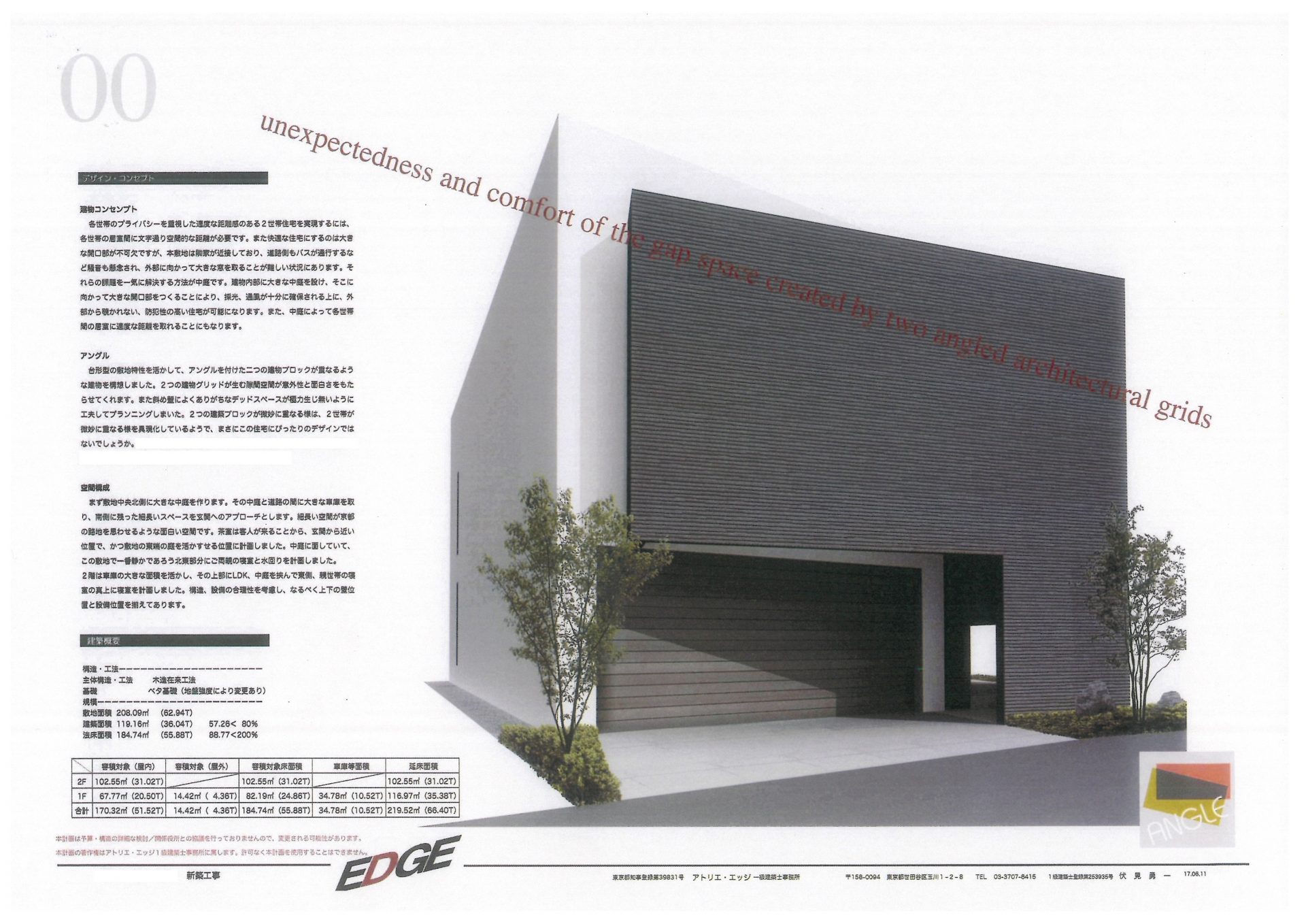 2世帯を具現化したような、アングルを付けた二つの建物ブロックが重なる外観が印象的ですね。