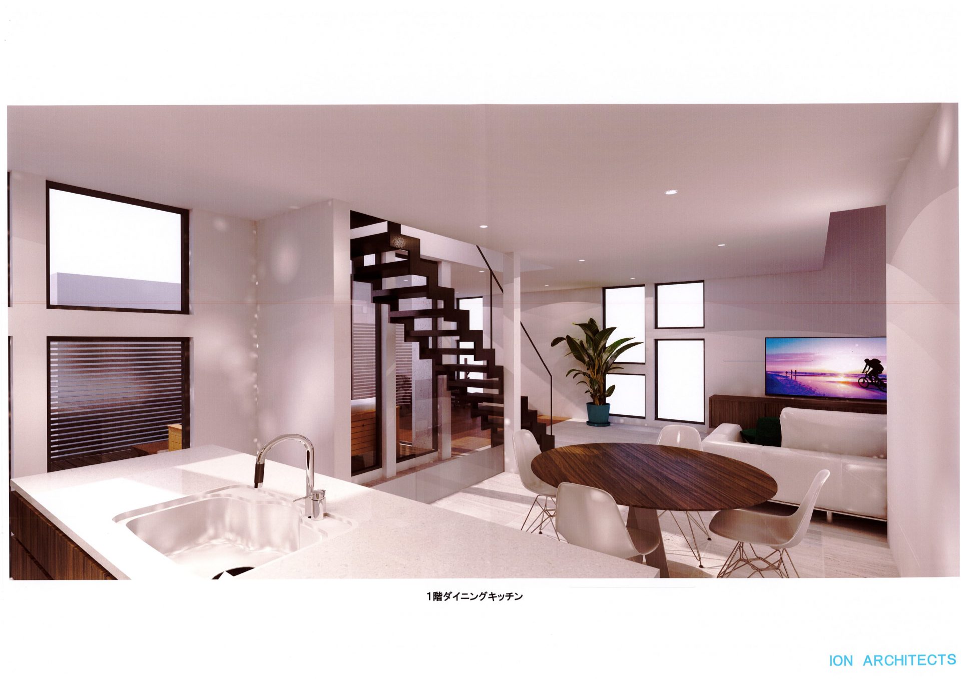 1階に天窓を設けヨガスタジオに光が差し込むように設計されています。水回りや階段が北側にまとめられておりますのでどの部屋も採光に優れています。バルコニーも南側に設けられており、ゆったりとくつろげそうです。