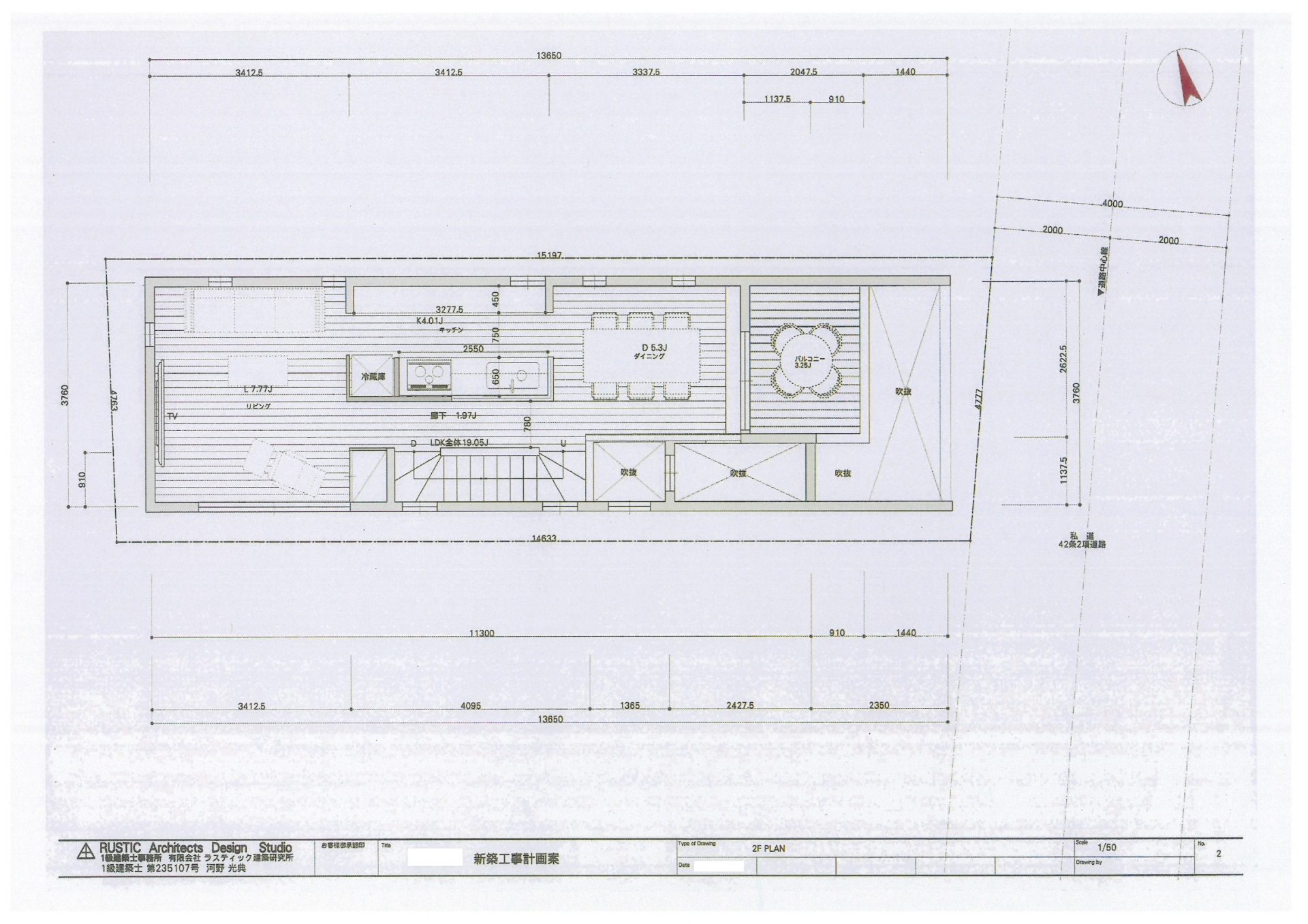 スキップフロアを上手に採用することで最大限の空間利用をしています。2階に約22帖のLDK+バルコニーを設け、ゆったり寛げる居心地の良い空間作りがされています。また、吹抜けやトップライトを設けることにより、明るく抜け感のある工夫が感じられます。