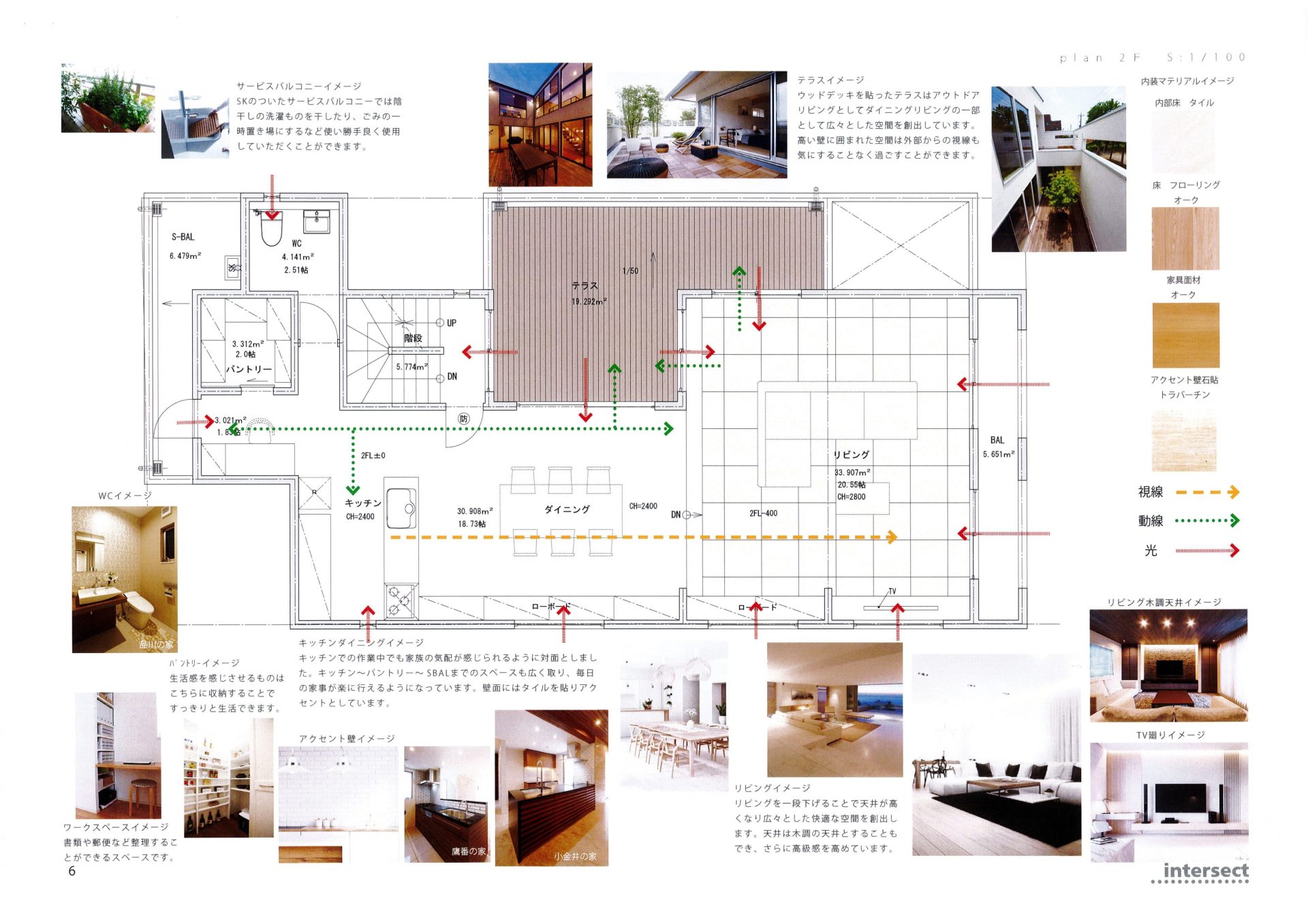 2Fのテラスはリビングダイニングと繋がり、アウトドアリビングとしても利用できます。また3階まで吹き抜けているため3階のホワイエからも繋がりが感じられます。