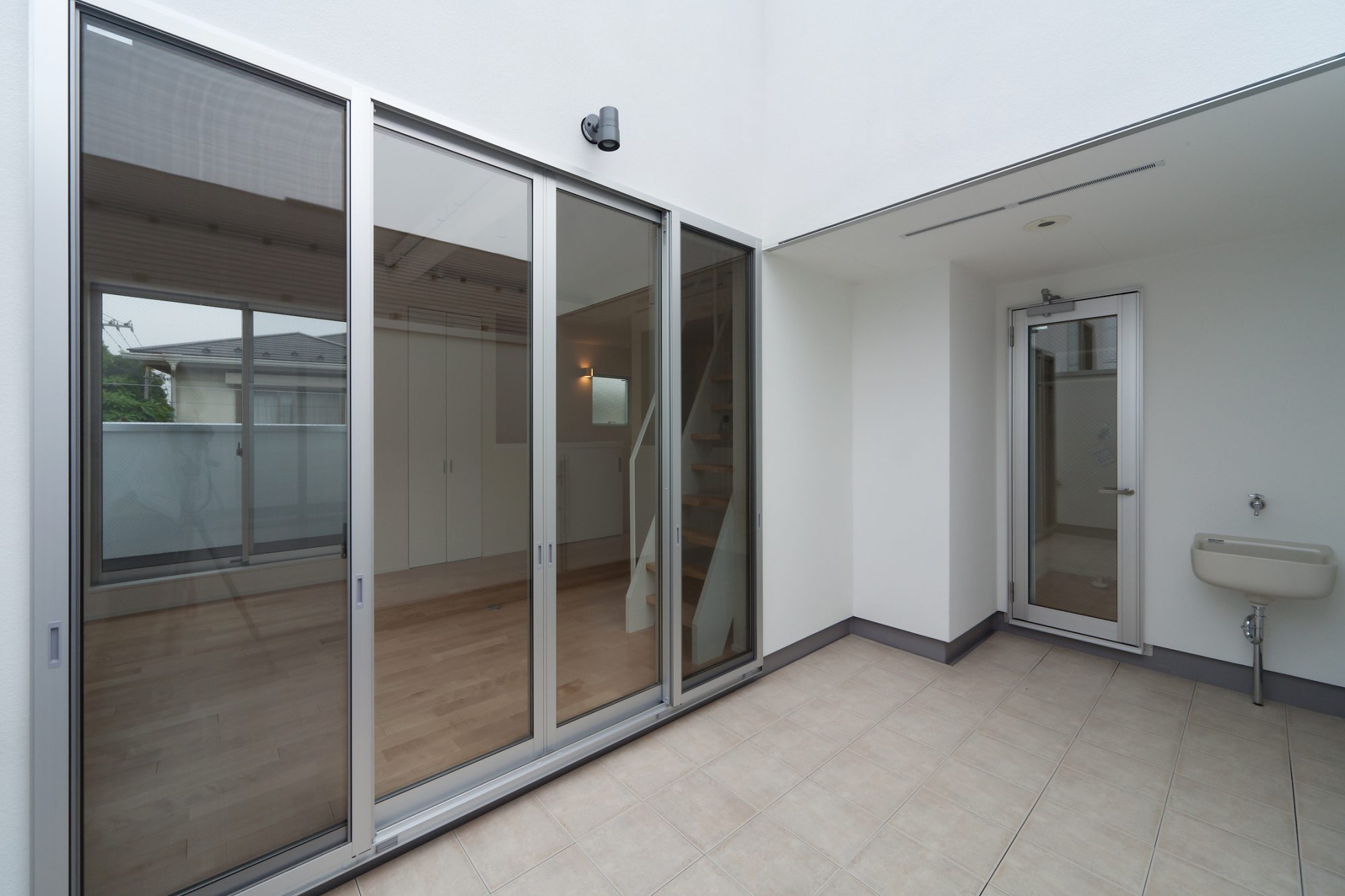 東京都世田谷区の密集した住宅街に、建築家の設計によって建坪以上の広さを感じられる、 アイディア満載の注文住宅です。 リビングに繋がるパティオは家族が自然と集う場所となっております。